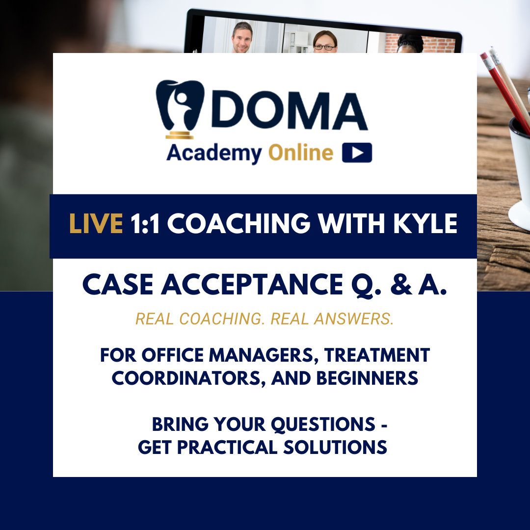 I’ve been a treatment coordinator for 10+ years, and I still walked away with new strategies. Kyle’s coaching was specific to my office’s challenges, and I was able to apply it the very next day. Our case acceptance rate jumped within weeks.
